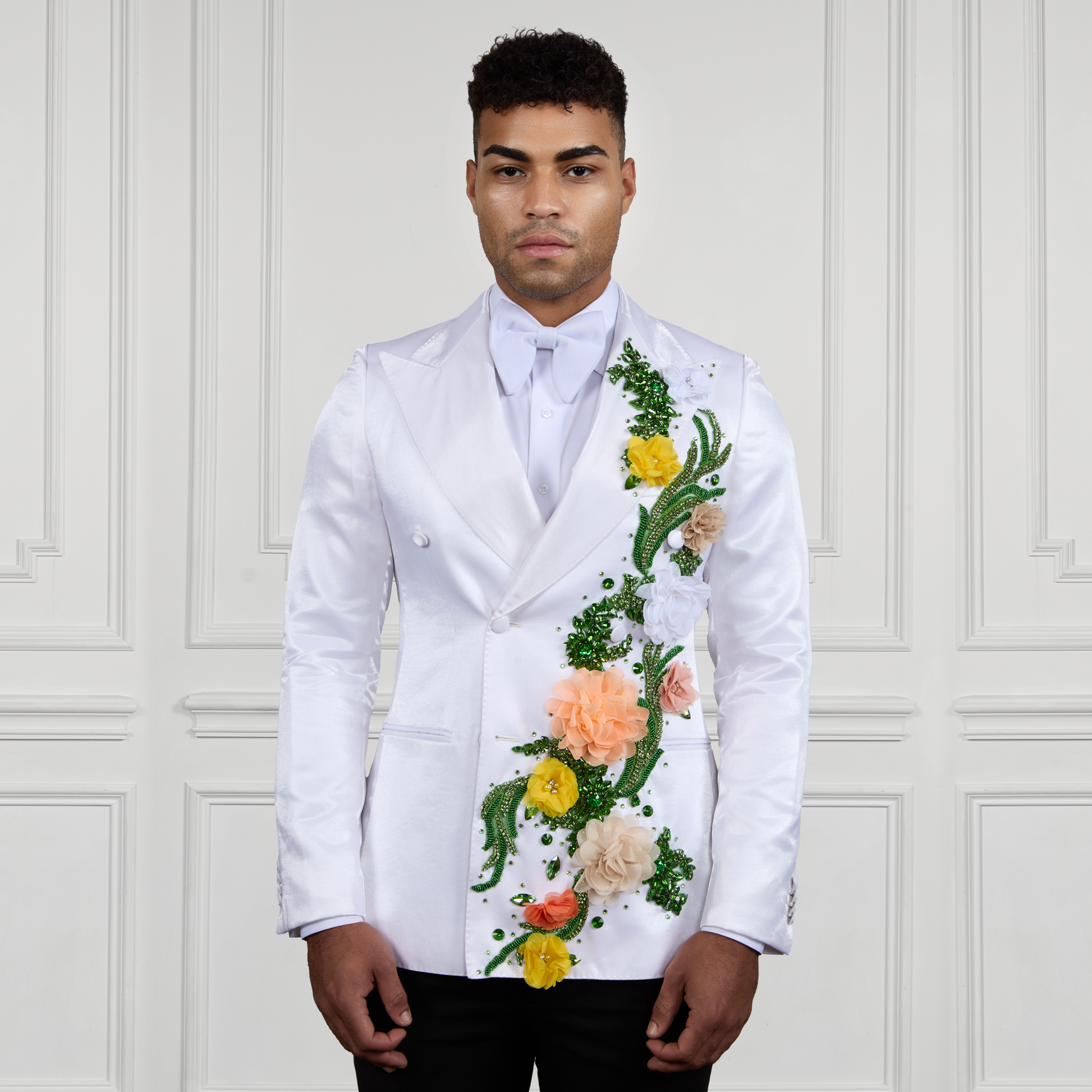 • Pairing Suggestion: Best paired with black dress trousers and a crisp, white tailored shirt to enhance the floral embellishments.