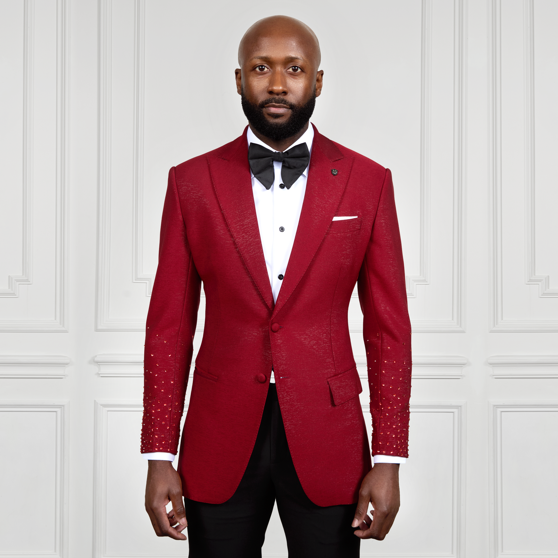 • Style: Single-breasted with crystal embellishments on the sleeves for a touch of modern opulence.