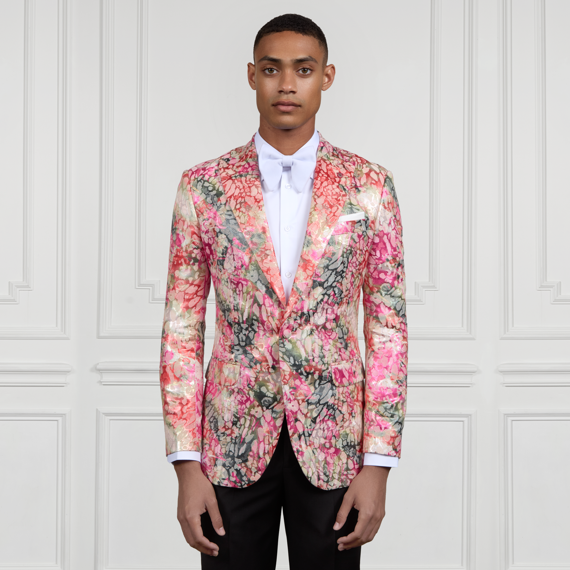 • Style: Single-breasted with a vibrant floral pattern for a touch of bold elegance.